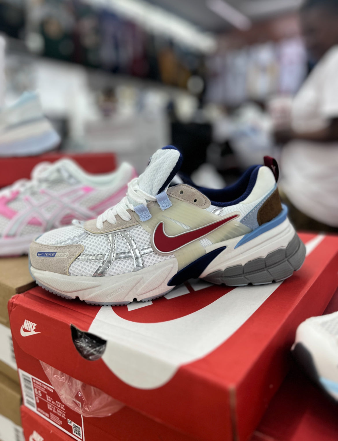 NIKE V2K RUN METALLIC SILVER/GYM RED/UNIVERSITY BLUE/WOMENS SNEAKER******